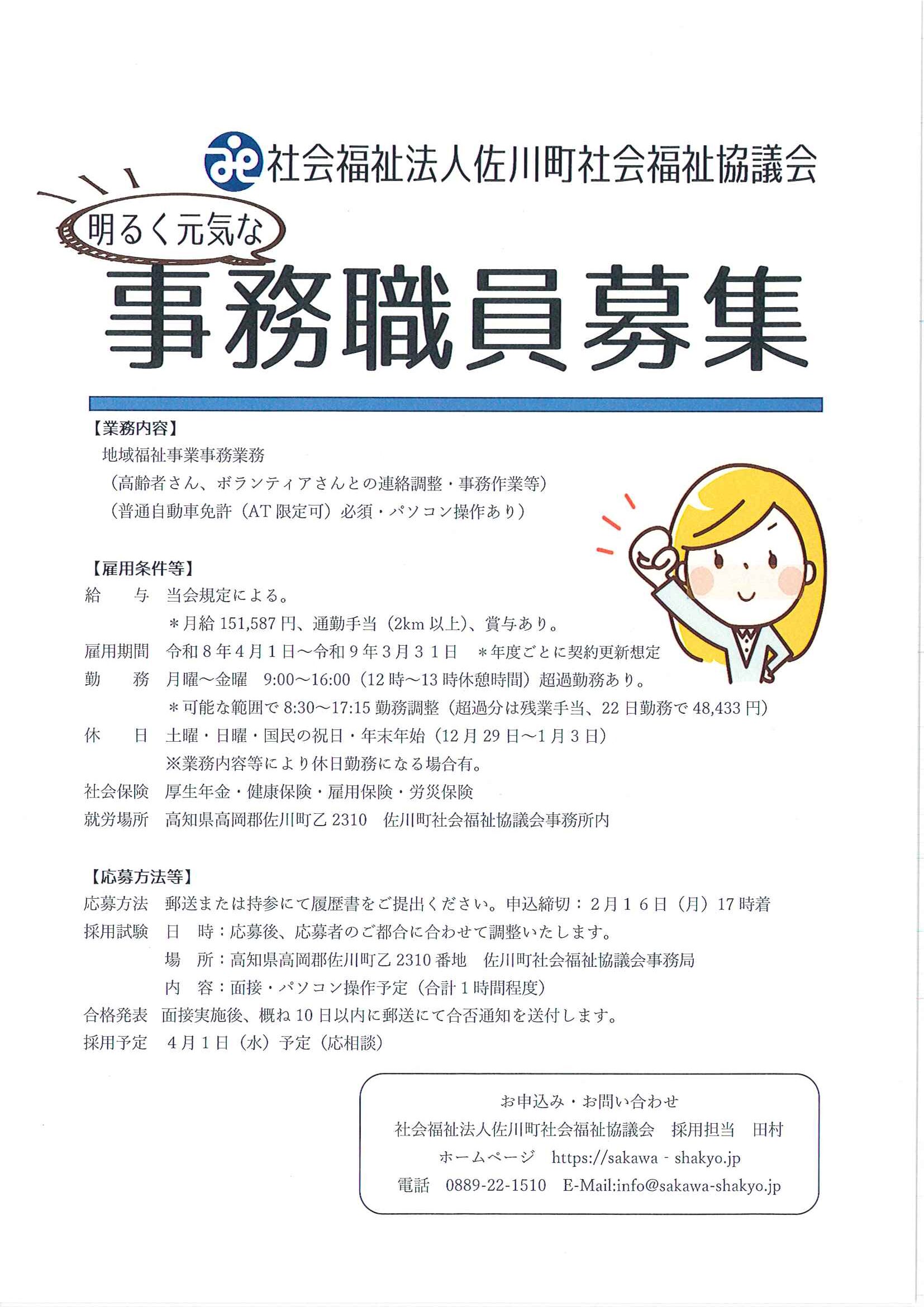 社会福祉協議会で働いてくれる職員さんを募集します。